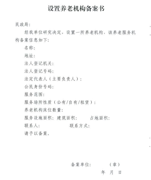 設(shè)置養(yǎng)老機(jī)構(gòu)備案書;